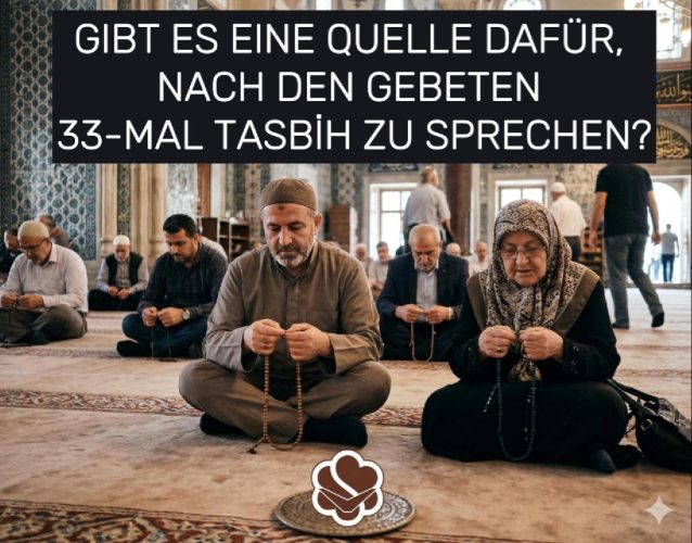 Es wird gefragt, ob es eine Quelle dafür gibt, nach den Gebeten 33-mal Tasbih zu sprechen. Also „Subhanallah“, „Elhamdulillah“ und „Allahu Ekber“ zu sagen.