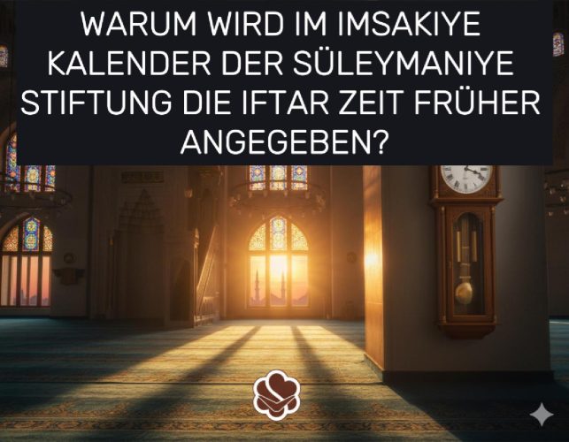 Warum wird im Kalender der Süleymaniye Stiftung die Iftar Zeit im Vergleich zum Kalender der Türkischen Religionsbehörde (Diyanet) um 5–6 Minuten früher angegeben?