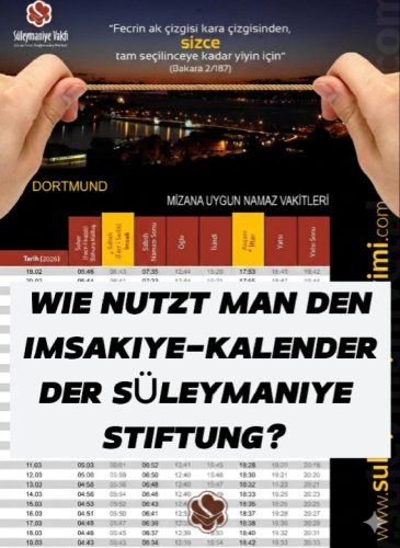 Könnten Sie kurz erklären, wie man den Imsakiye-Kalender benutzt? Zum Beispiel: Was bedeutet in Ihrem Imsakiye die Zeit, die als Seher-Zeit angegeben ist, und bis zu welcher letzten Zeit dürfen wir essen? Darf man bis zu der Zeit essen, die als Ende des Morgengebets bezeichnet wird?